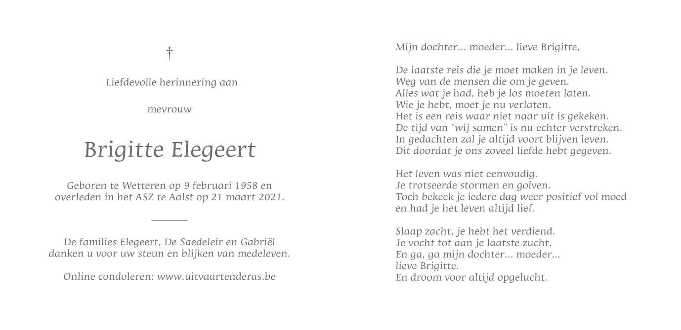 Overleden te Aalst (9300) op zondag 21 maart 2021 op 63-jarige leeftijd