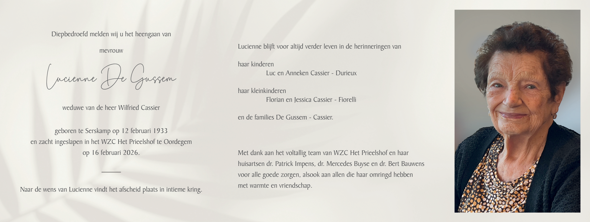 Overleden te Oordegem (9340) op maandag 16 februari 2026 op 93-jarige leeftijd
