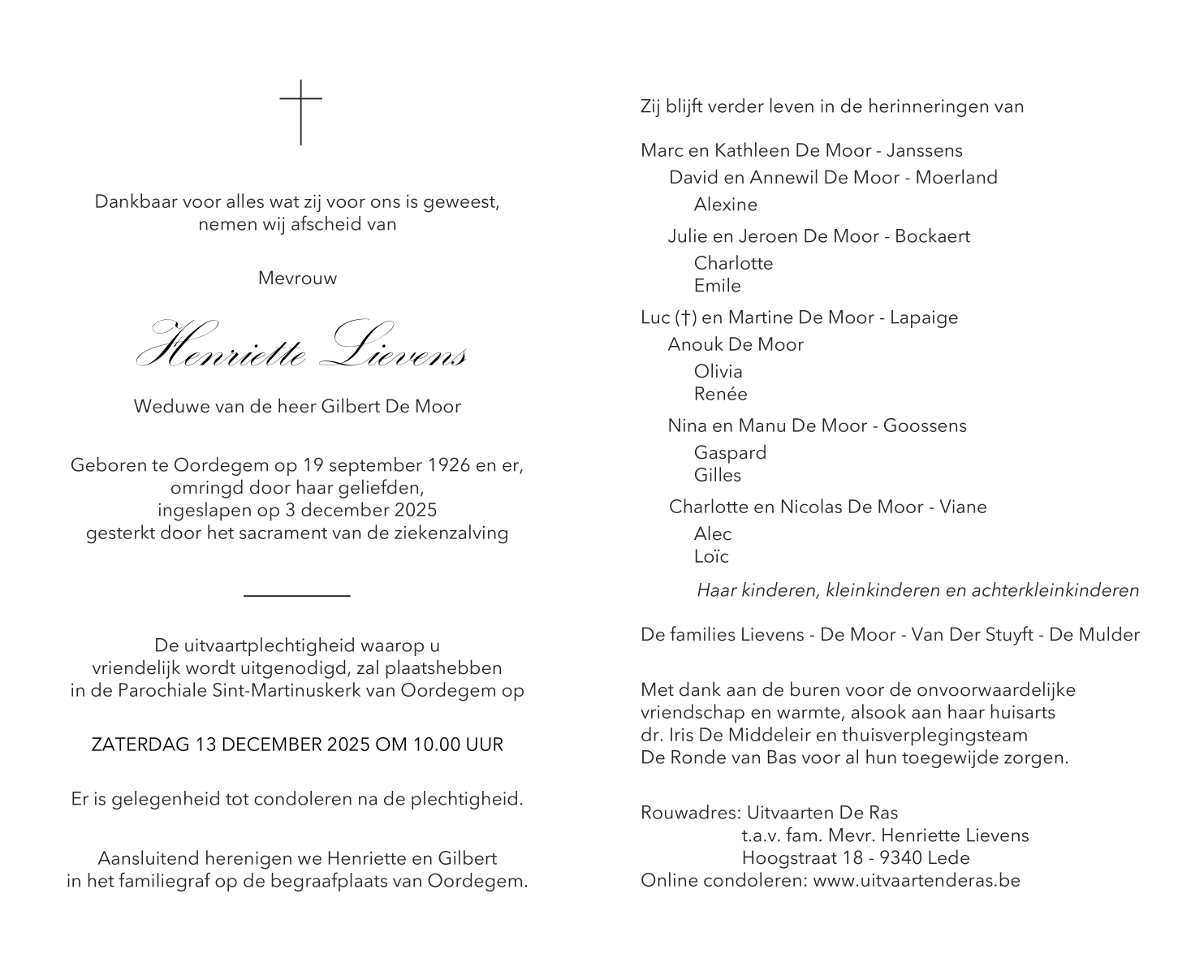 Overleden te Oordegem (9340) op woensdag 3 december 2025 op 99-jarige leeftijd