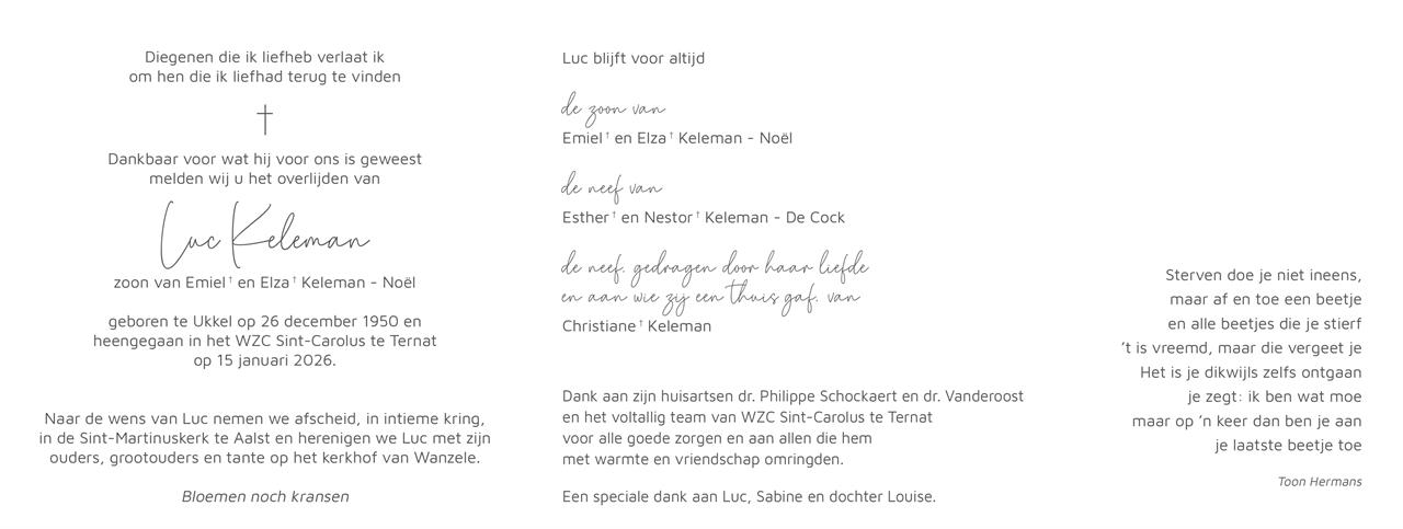 Overleden te Sint-Katherina-Lombeek (1742) op donderdag 15 januari 2026 op 75-jarige leeftijd