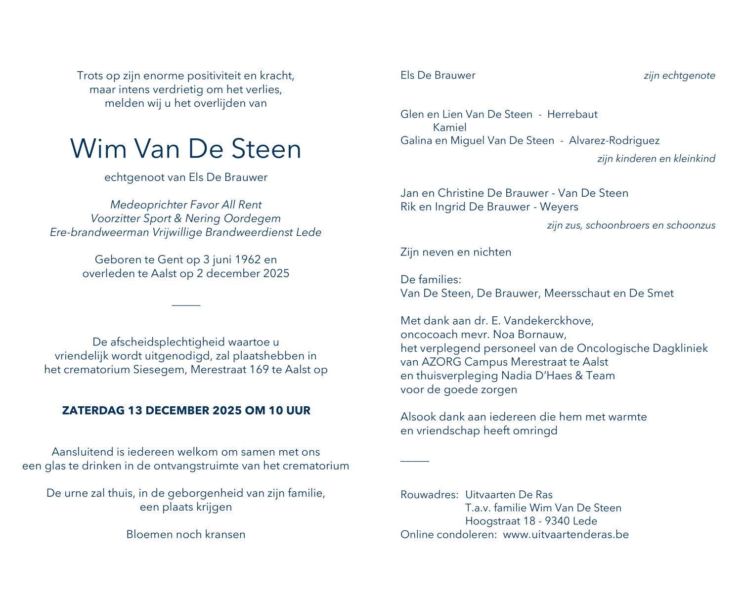 Overleden te Aalst (9300) op dinsdag 2 december 2025 op 63-jarige leeftijd