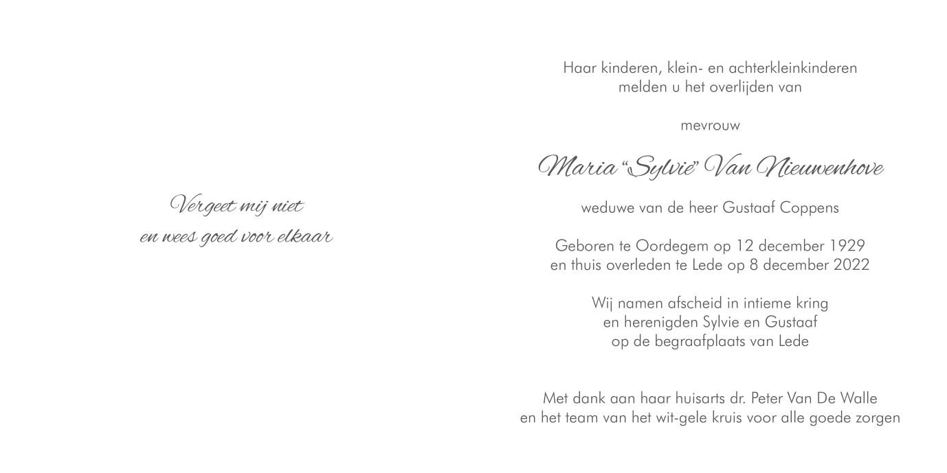 Overleden te Lede (9340) op donderdag 8 december 2022 op 92-jarige leeftijd