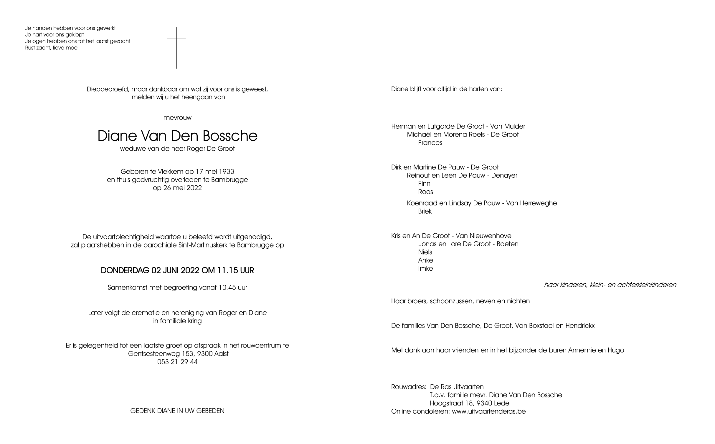 Overleden te Bambrugge (9420) op donderdag 26 mei 2022 op 89-jarige leeftijd