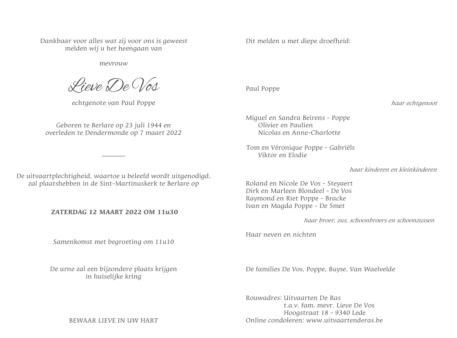 Overleden te Dendermonde (9200) op maandag 7 maart 2022 op 77-jarige leeftijd