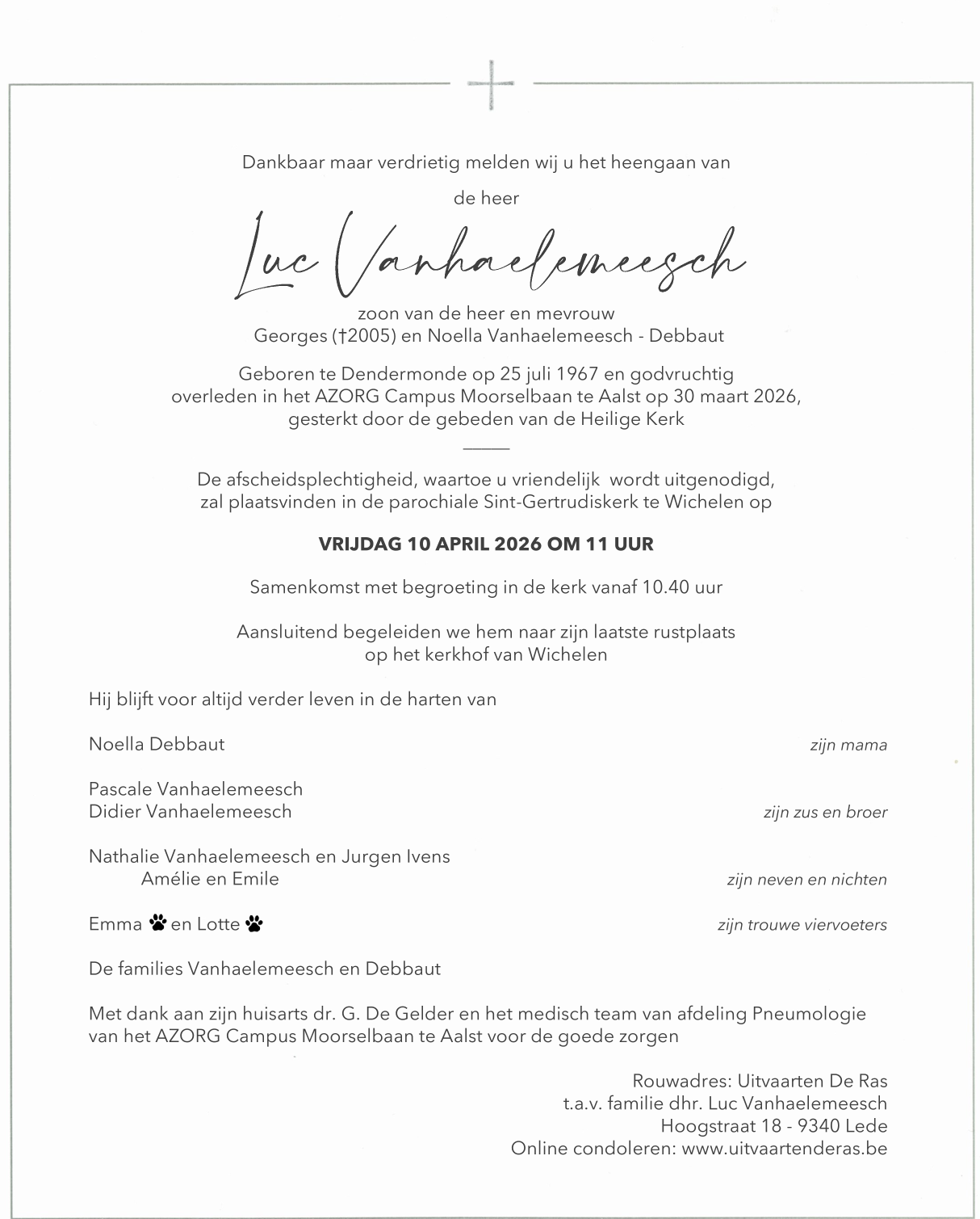 Overleden te Aalst (9300) op maandag 30 maart 2026 op 58-jarige leeftijd